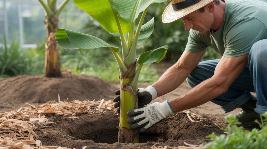 A balanced fertilizer with extra potassium supports strong pseudostems and fruit. Combine with compost or manure for better soil health and steady nutrient supply.