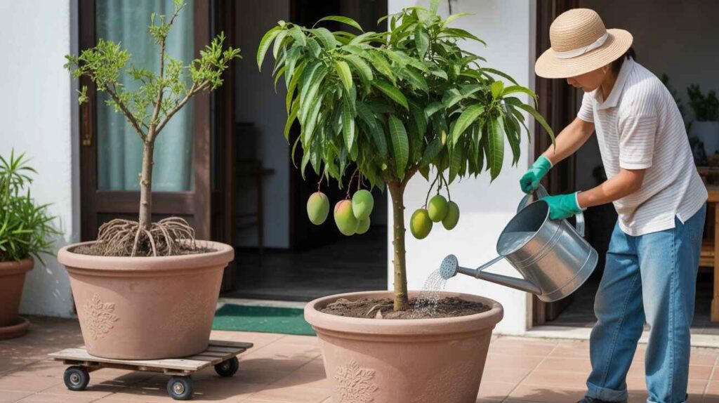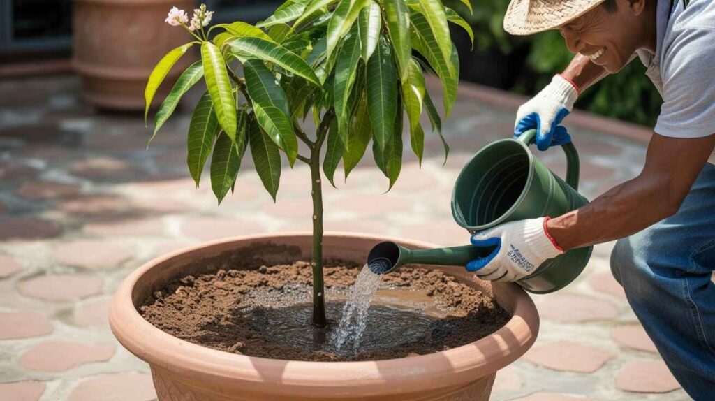 You may wonder, “can mango trees grow in a pot without extra care?” They need consistent attention. Watering frequency for mango trees in pots varies—usually 2–3 times a week in hot weather. Full sun is essential for flowering and fruiting.