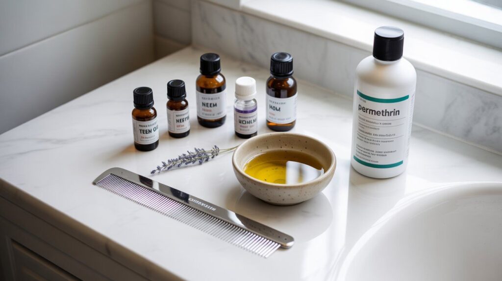 Conventional options include over-the-counter permethrin, pyrethrin shampoos, and professional lice removal. Combining methods—like using tea tree oil for head lice alongside combing and cleaning bedding—increases effectiveness.